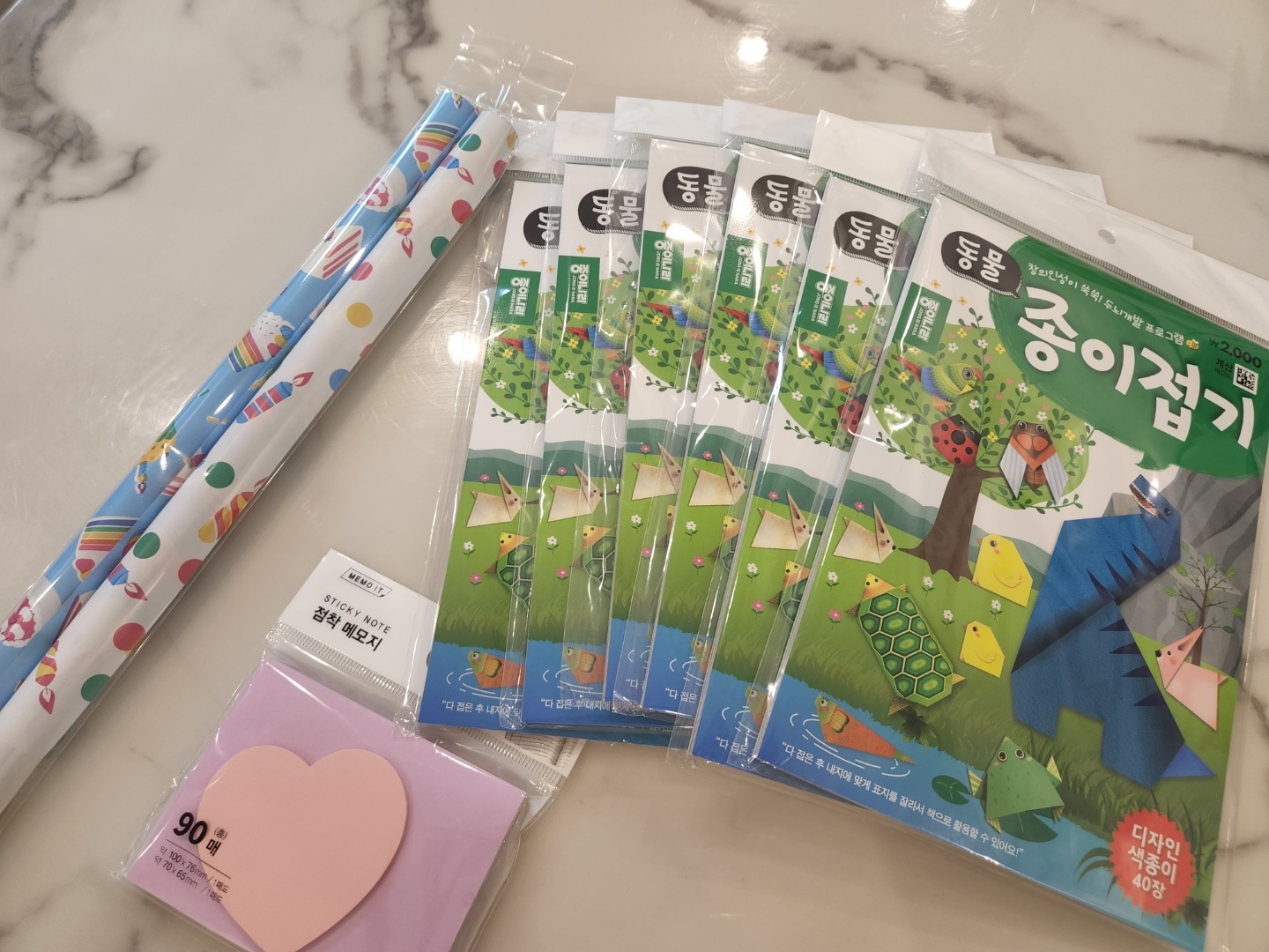문구점도 돌고 마트도 돌아 겨우겨우 선물을 골라서