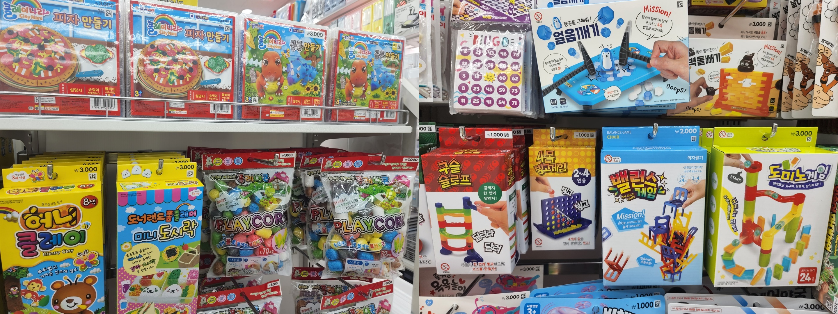아이들 장난감이과 문구류가 준비되어 있어요.